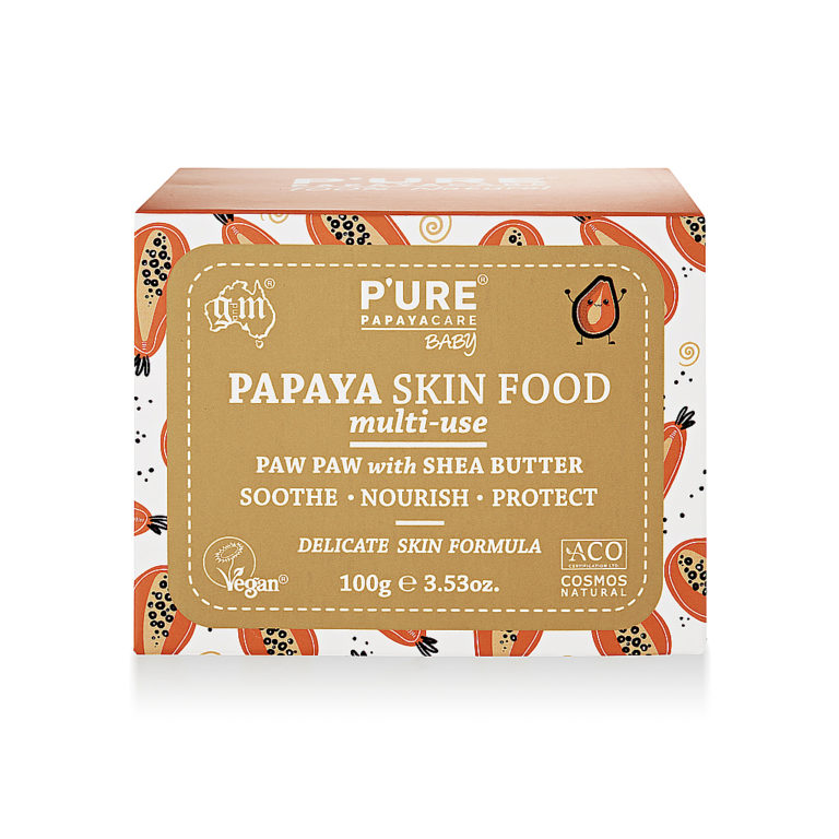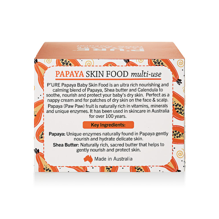 Kem dưỡng da Papaya Baby Skin Food được làm giàu với chiết xuất đu đủ, cúc vạn thọ và bơ hạt mỡ giúp làm dịu, nuôi dưỡng và bảo vệ làn da khô của bé. Papaya Baby Skin Food không chứa hương liệu và rất thích hợp cho những vùng da khô, mỏng manh trên mặt và toàn thân bé.